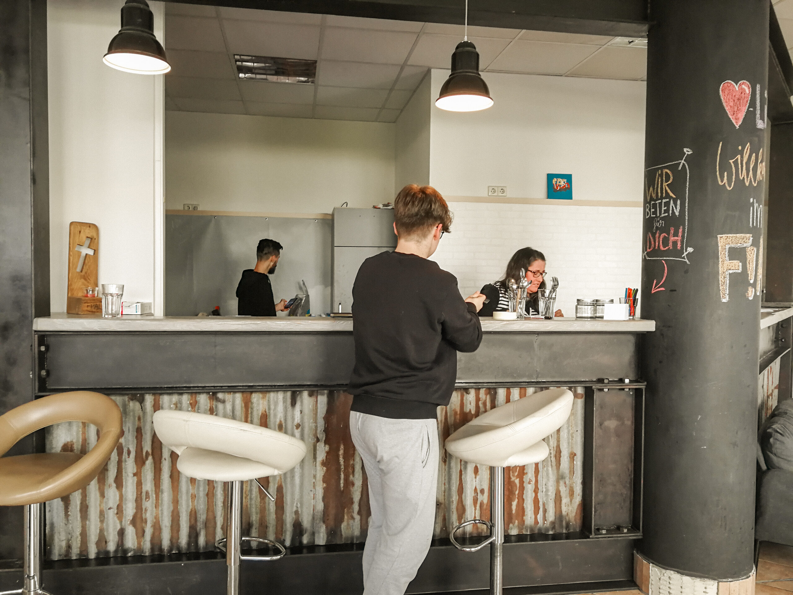 Hier kannst du spielen, kreativ sein oder bei einer spannenden Geschichte von Gott entspannen. Freu dich auf leckere Snacks, coole Getränke und jede Menge Action – vom Tischkicker bis zu Brettspielen.